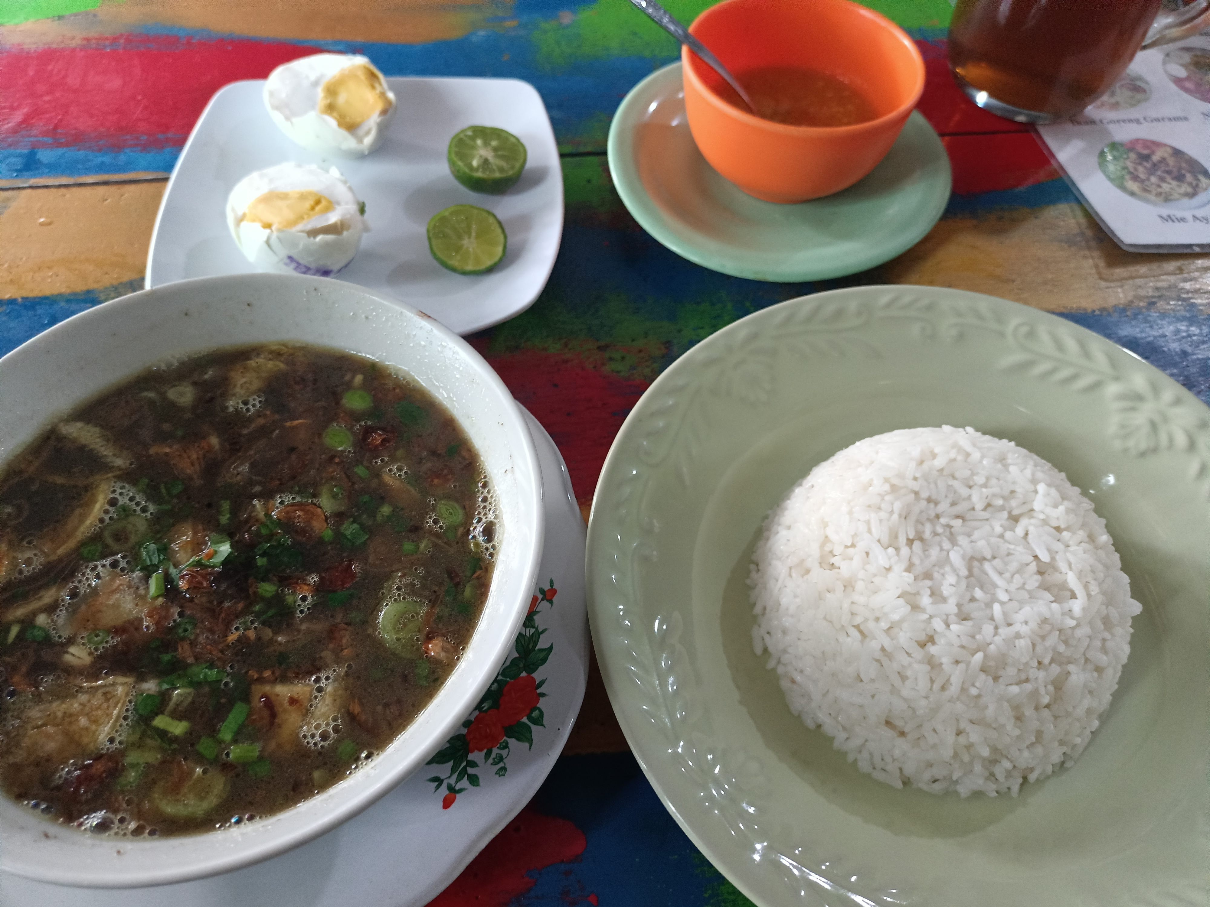 ★食事:ナシ・チャンプールRp12,000-/カレー・アヤムRp12,000-/ミー・アヤム・バッソRp11,000-。店長のお薦めは、Sop Buntut(牛の尻尾のスープ)/etc